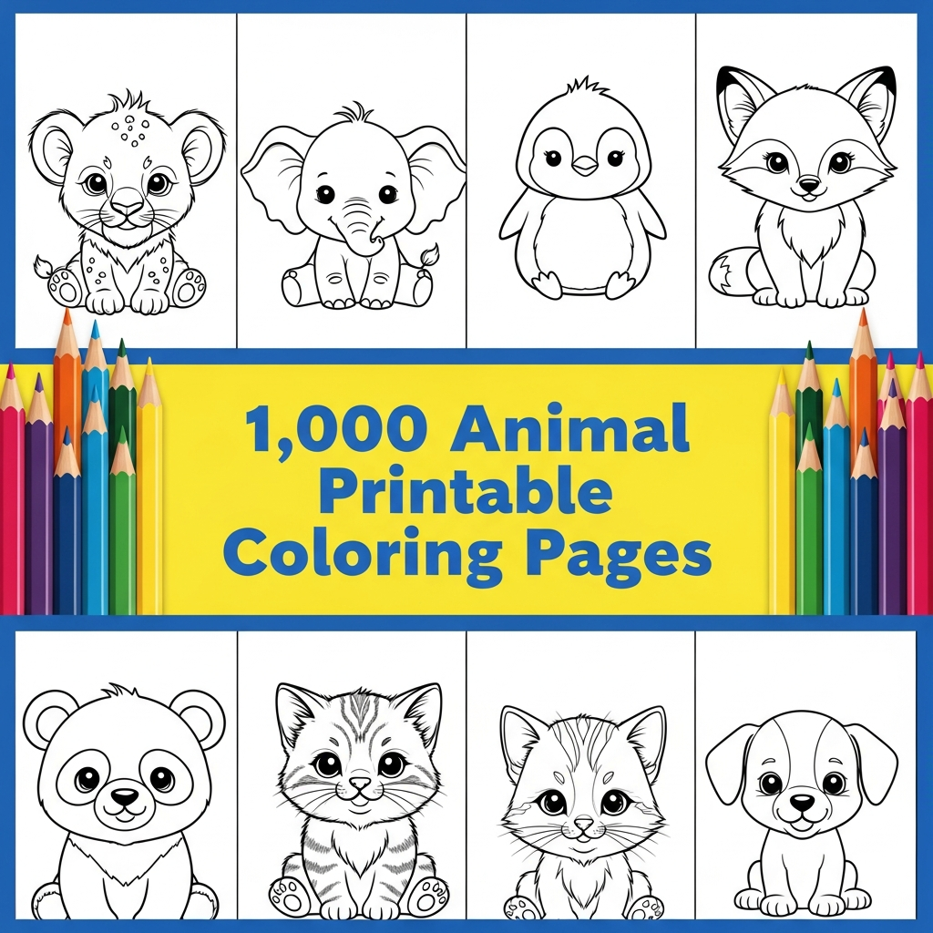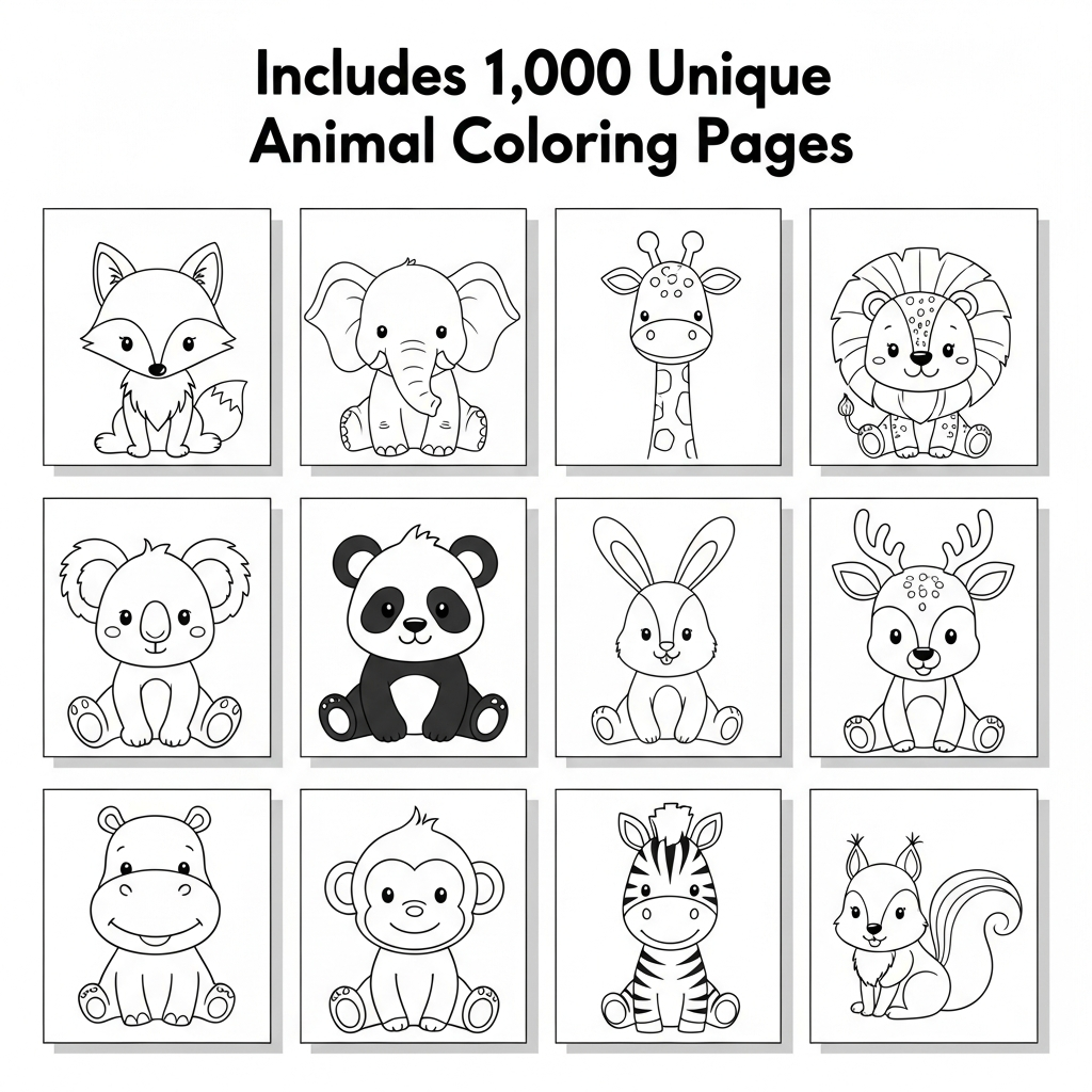 A huge bundle of 1,000 adorable animal coloring pages for toddlers and young kids!